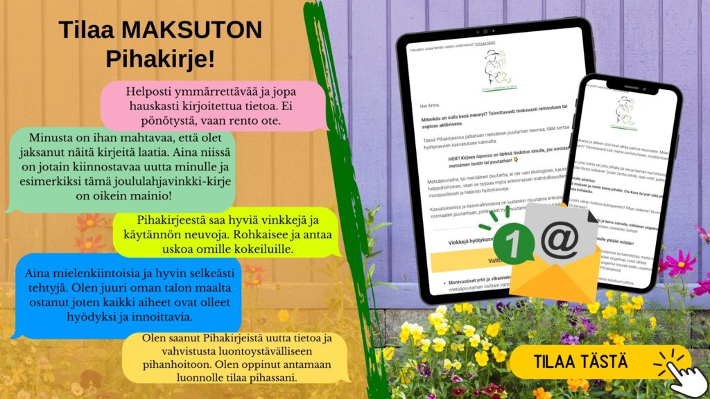 - Toisinaan suositellaan suihkuttamaan kranssit tai havuaskartelut lakalla paremman säilyvyyden takia. Itse en tätä suosittele, varsinkaan, jos aiot hävittää ne aikanaan kompostin kautta. Kun keräät kasvit oikeaan aikaan ja hyväksyt niiden vaatimukset säilytyksestä, selviät ilman kemikaalejakin!